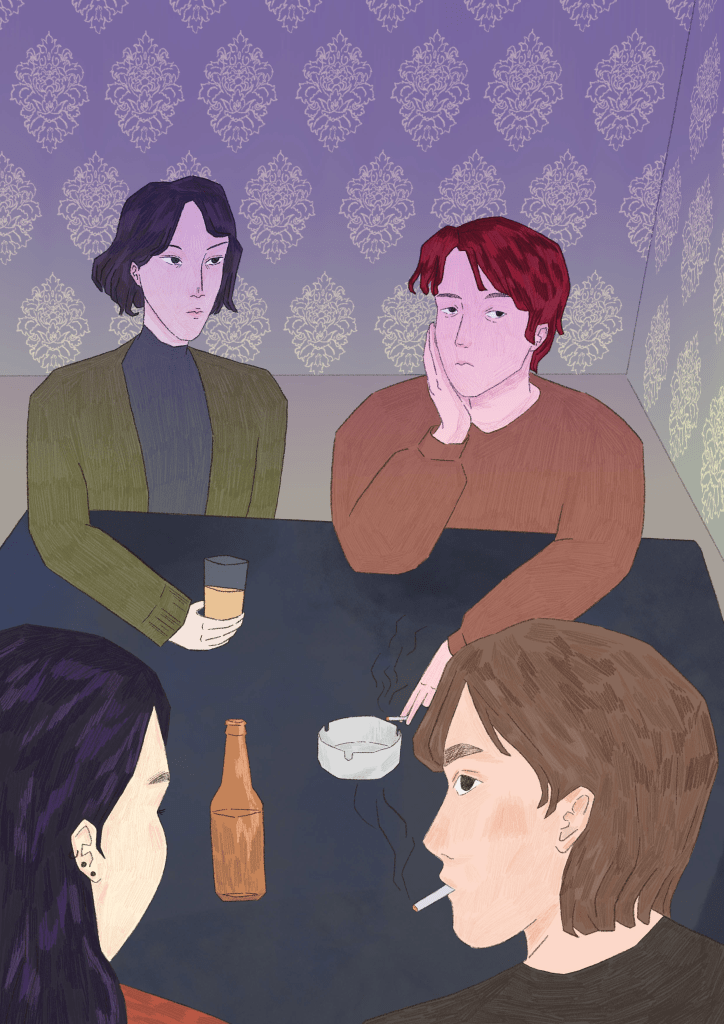 Начинается наш зин гайдом Коли Нахшунова про организацию книжных клубов и групп — очередным подпольным способом объединения и рефлексии в уюте квартир. Текст Рута Когана про дом как пространство. Пиксель-арт от Kiwq про сложность принятия себя в удушающей атмосфере недостаточности. Поэзию Саши Белой про квартиру как убежище. Коллажи na3.po4 про связь быта и опыта. Квир-оберег на удачу от Андрея Соула для обрамления окон и дверей вашего дома, отпугивающий доносы и темные энергии. Авторский текст Анны про интимность музыки и антиутопичный город тишины. Иллюстрации Yashin Art, как будто виньетки уличной жизни. А картина В.Б. — зарисовка ужина, в котором практически впервые почувствовал себя как дома и в безопасности. Поэзия Саши Марка про обещание, потерю, возвращение и пространство. Работа Зонне про злость и деструктивное желание. Коллаж klara_the_designer с утопическим представлением дома. И серия коллажей от Gans про преодоление травматичного опыта.
